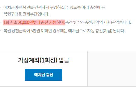 동행복권 예치금 충전 방식은 1회성 가상계좌를 받아서