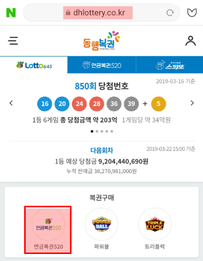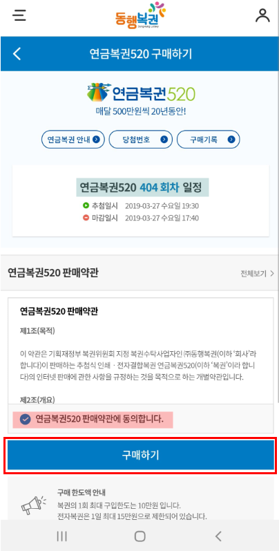 모바일로 연금복권 구매하는 방법