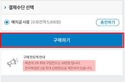참고로 연금 복권520을 구매하려면 예치금이 필요합니다.