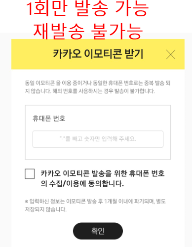 재발송은 불가능하니, 오타 없이 정확히 휴대폰 번호를 입력해주세요.