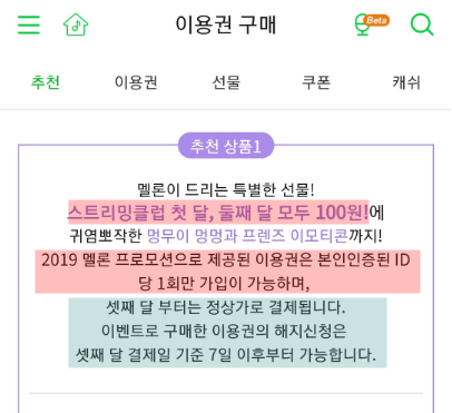 2019 멜론 2개월 100원 이용권 가입 및 유의사항