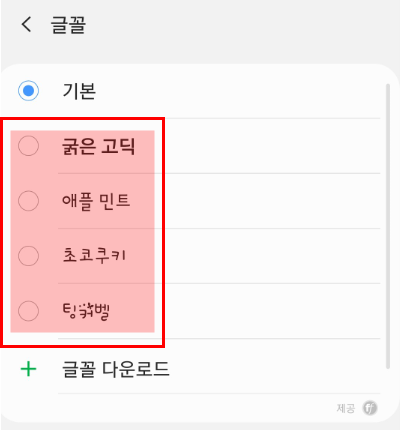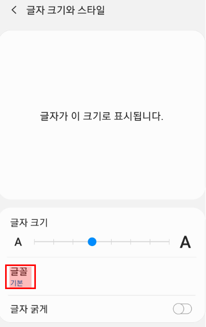 참고로 기본적으로 갤럭시 스마트폰 폰트는 "기본"폰트로 되어있습니다.