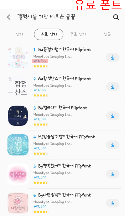 # 다운 가능한 글꼴은 무료도 있고 유료도 있습니다.
