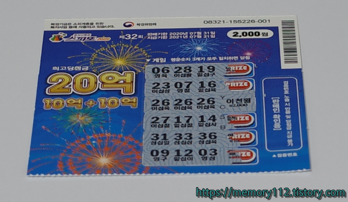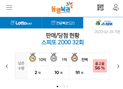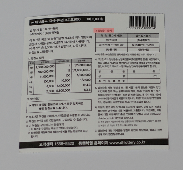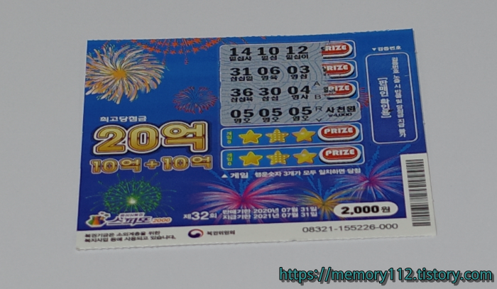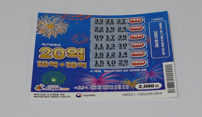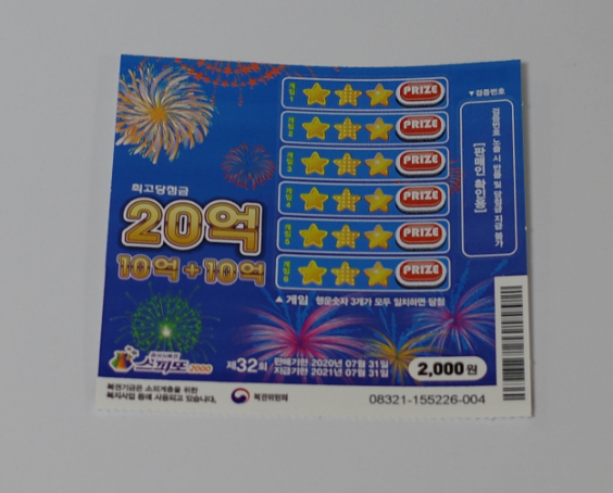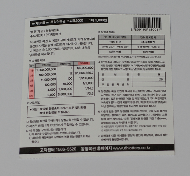 이번에 내가 구매한 복권은 스피또2000 32회차이다.