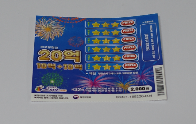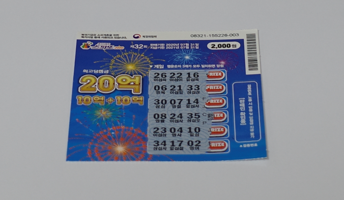 복권 앞면에는 '최고 당첨금 20억'이라고 적혀있다.