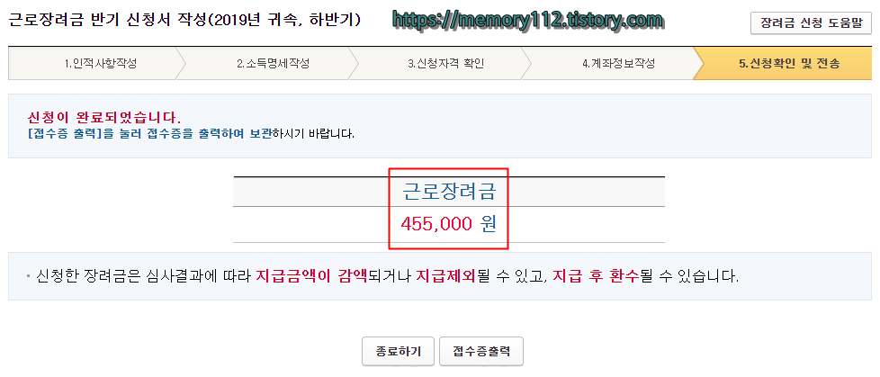 심사 결과에 따라 감액되거나 근로장려금 지급 제외가 될 수 있습니다.