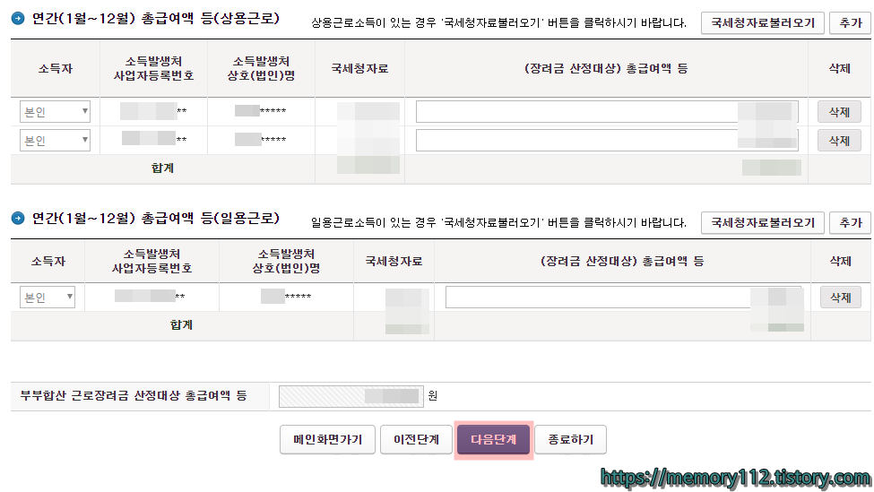 그리고 여기에 나오는 소득 정보를 임의로 삭제할 수도 없습니다.