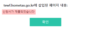 만약 근로장려금 신청 조건에 부합하지 않는다면 위와 같은 메시지가 나올 것입니다.