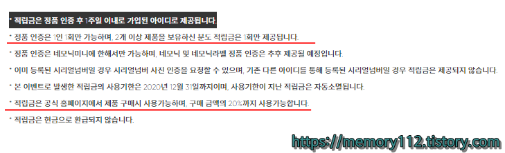 그리고 정품인증 이벤트는 20년 2월 14일부터 20년 3월 31일까지만 진행되네요.