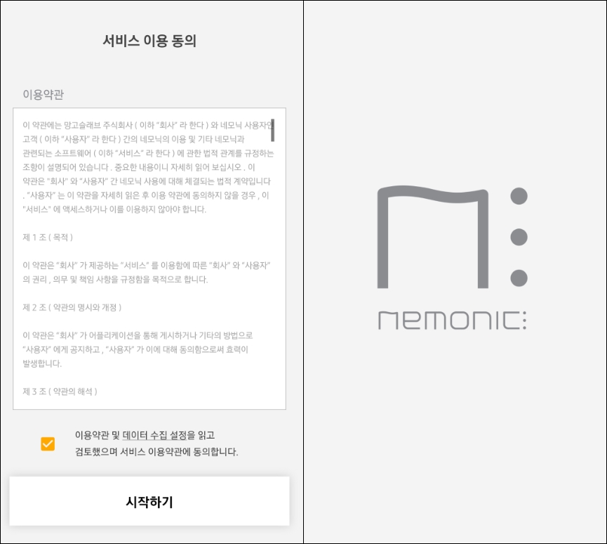 이용 약관에 동의하고 시작하기 버튼을 눌러줍니다.
