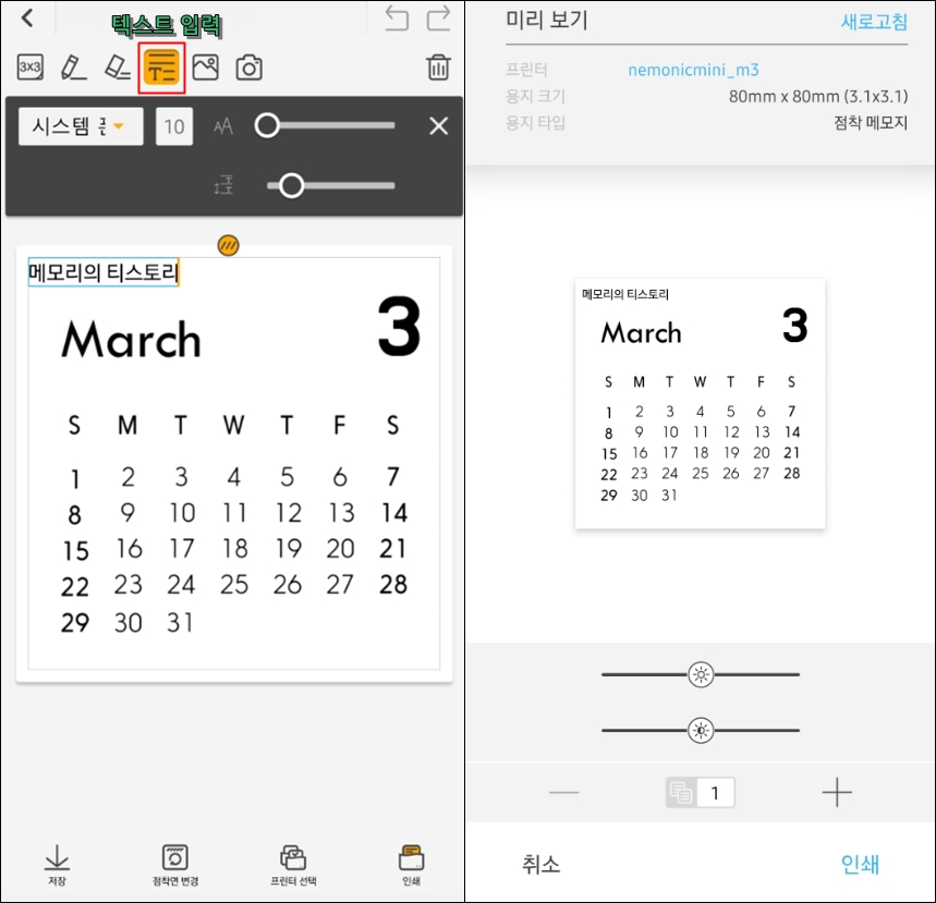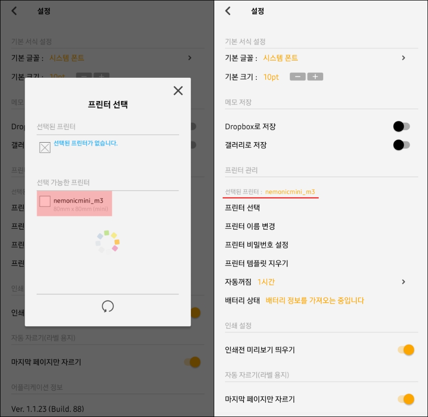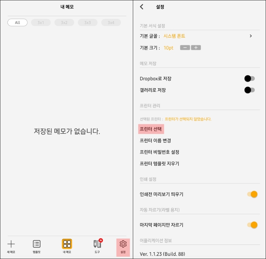 프린터 설정도 해주었으니 이제 네모닉 앱을 본격적으로 사용해봅시다.