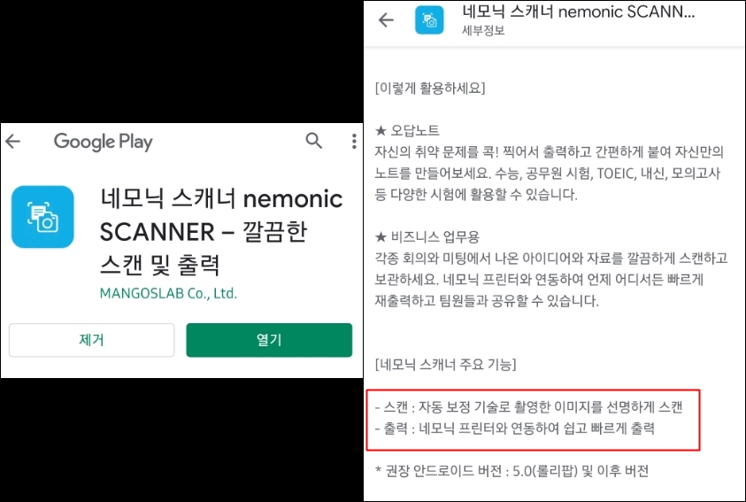 앱 기능 설명을 읽어보니 네모닉 스캐너와 스터디 앱 사이에 큰 차이는 없어보이는데