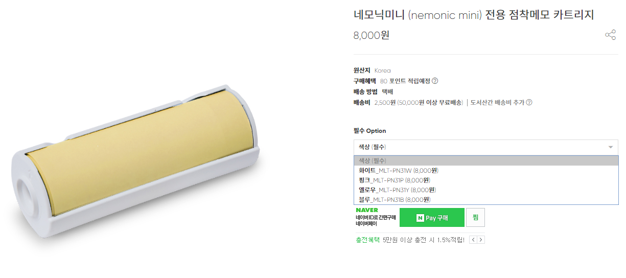 네모닉미니 전용 점착메모 카트리지는 1개당 8,000원이에요.