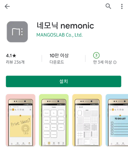 구글 플레이 스토어에서 '네모닉 nemonic'을 검색하고 설치해줍니다.