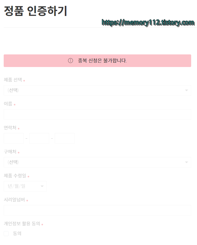 정품 인증 이벤트는 중복 참여가 불가능하네요.