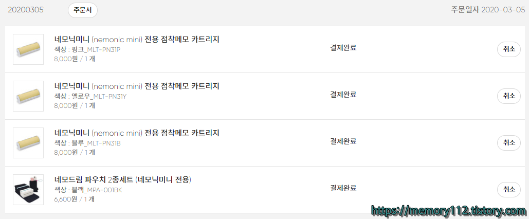 기본 제공되는 카트리지는 금방 다 쓸 것 같아서 카트리지를 조금 구매하기로 했어요.