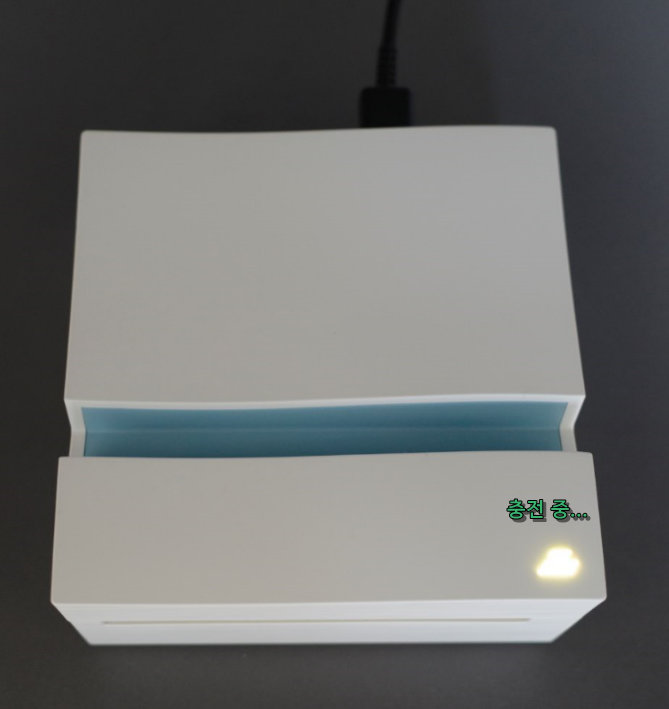 전원을 켠 상태에서 충전기를 꽂으니 LED 컬러가 노란색으로 바뀌네요.