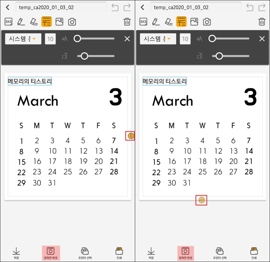 해당 버튼을 누르면 접착면을 상, 하, 좌, 우로 자유롭게 변경할 수 있어요.