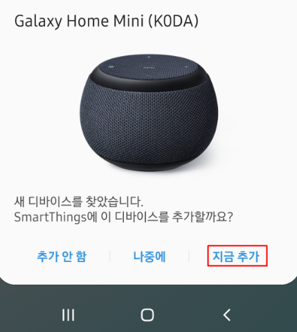 이제 갤럭시 홈 미니를 SmartThings(스마트싱스)에 등록해보자.
