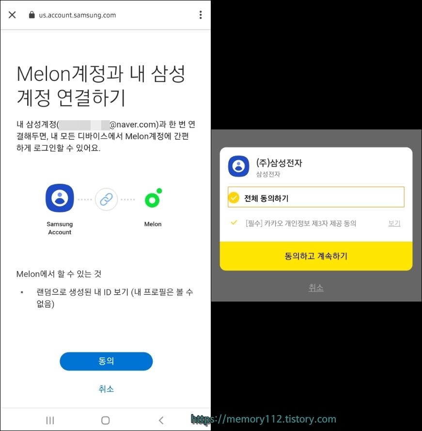 삼성 계정과 멜론 계정 연결이 최종적으로 완료되었다.