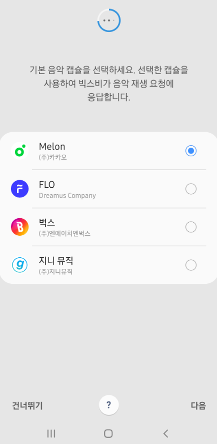 다시 음악 캡슐을 멜론으로 선택하고 다음을 눌러준다.