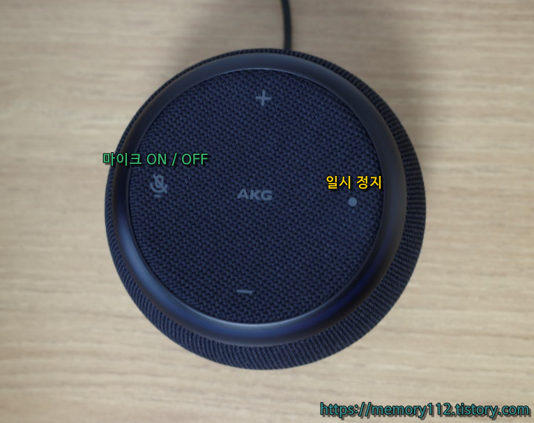 버튼은 음악 일시 정지 버튼, 마이크 ON/OFF, 음량 UP/DOWN으로 구성되어있다.