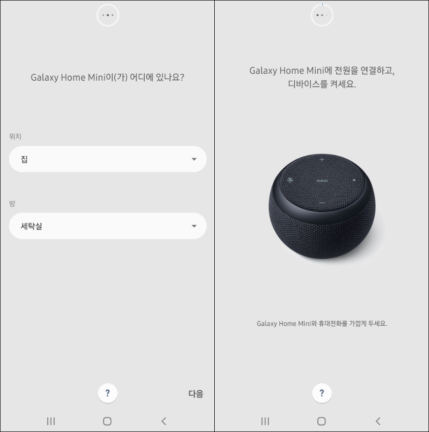 갤럭시 홈 미니 기기가 어디에 있는지 위치를 설정하고,