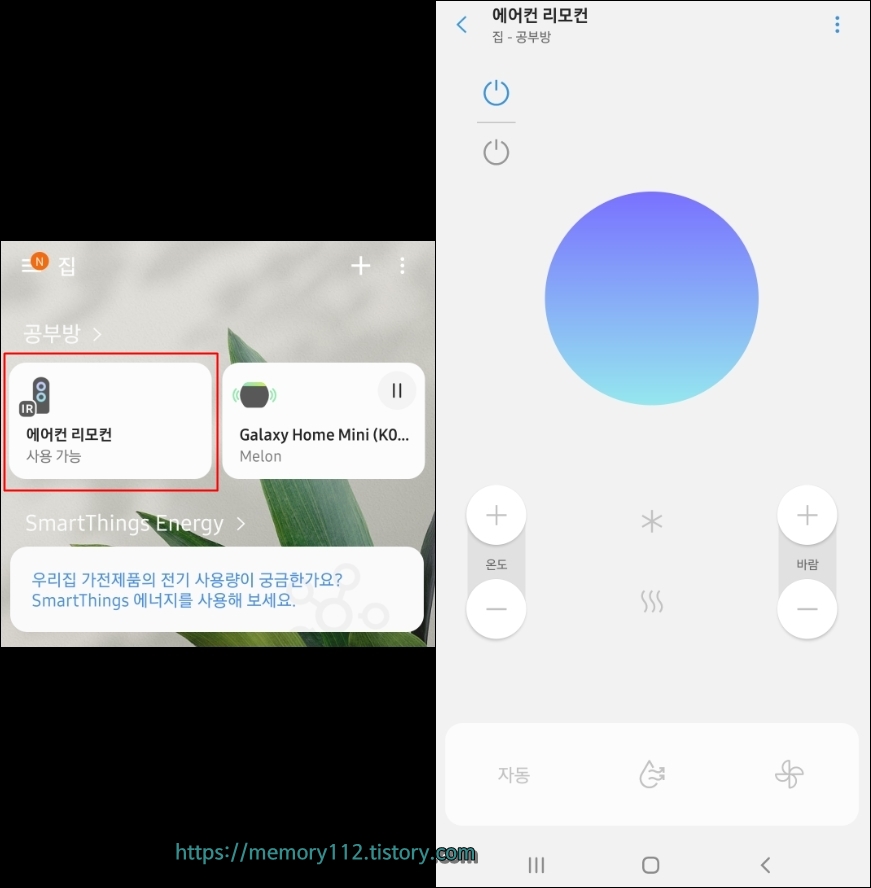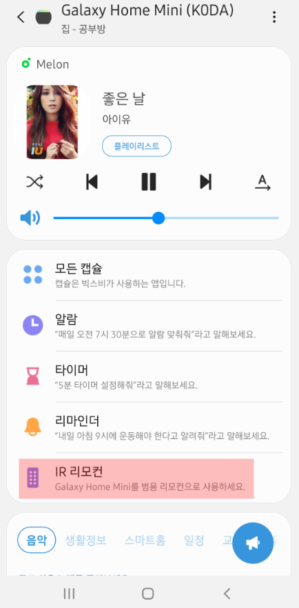 스마트싱스에 등록한 갤럭시 홈 미니로 들어간 모습이다.