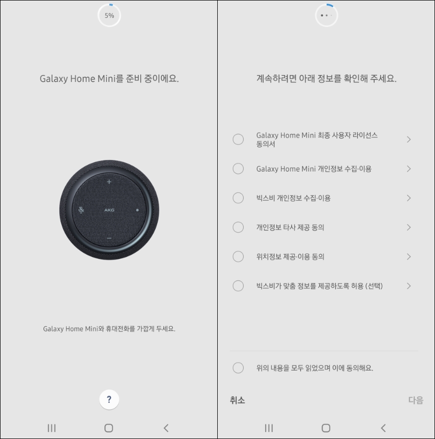 이로써 갤럭시 홈 미니 연결이 완료되었습니다.