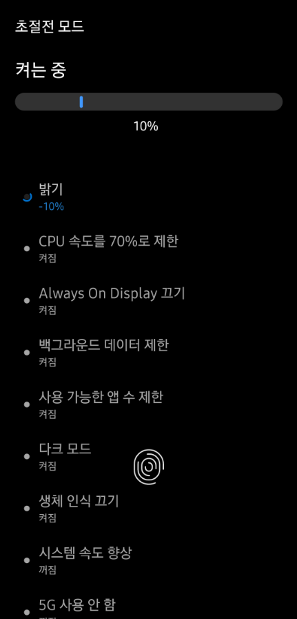 디바이스가 이렇게 자동으로 초절전 모드를 ON시킵니다.