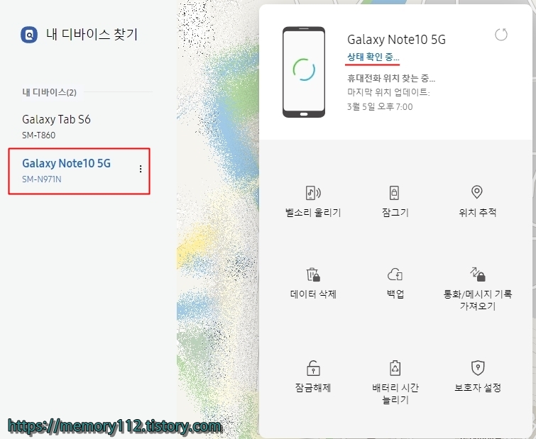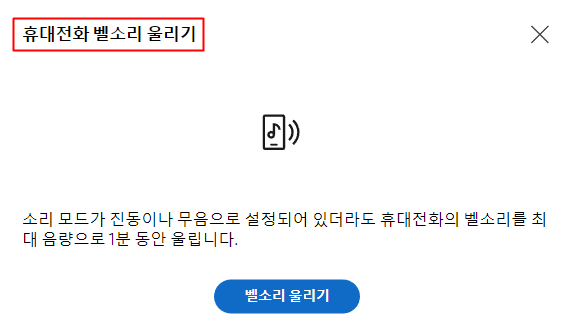 내 디바이스 찾기 홈페이지에서 벨소리 울리기를 누르니