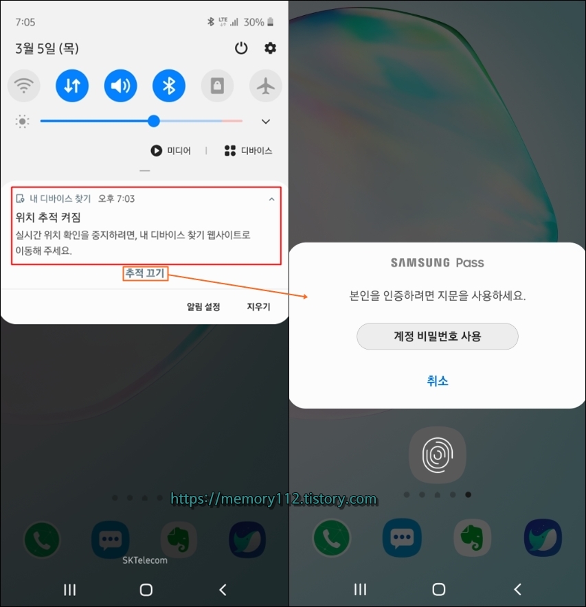 위치 추적을 끄려면 삼성 계정 본인 인증을 해줘야 합니다.