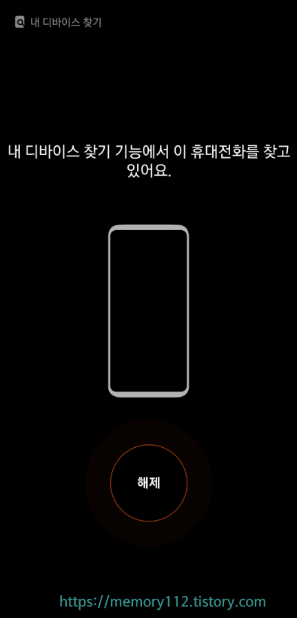 '내 디바이스 찾기 기능에서 이 휴대전화를 찾고 있어요.'라는 메시지와 함께 벨소리가 크게 울렸습니다.