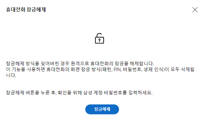 휴대전화 잠금 해제 기능을 이용하려면 삼성 계정 로그인이 꼭 필요합니다.