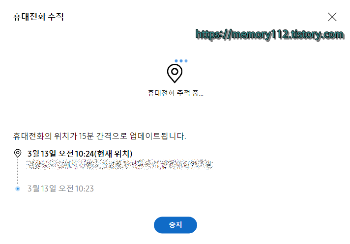 위치 추적은 15분 간격으로 계속 조회됩니다.