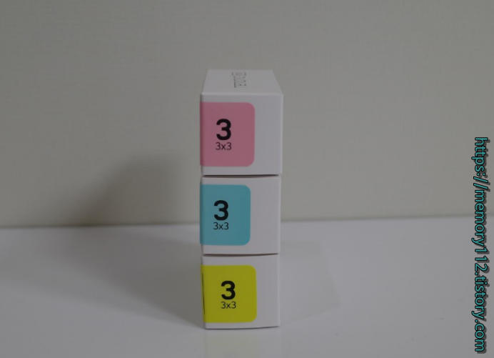 색상은 위에서부터 핑크, 블루, 옐로우입니다.