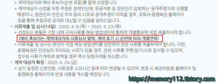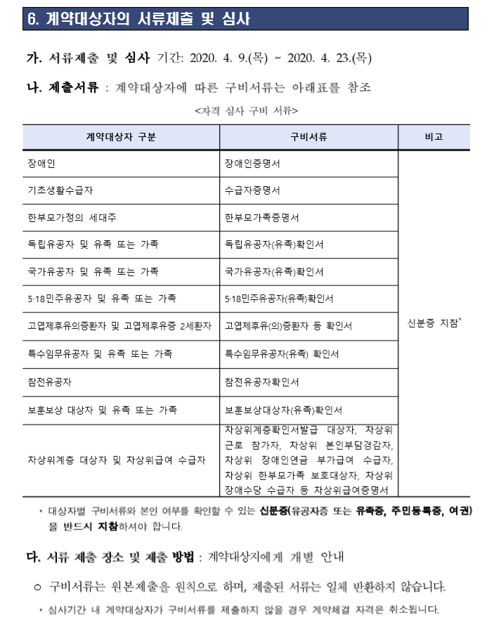 그리고 서류 제출 장소 및 제출 방법은 계약 대상자에게 개별적으로 안내된다고 합니다.