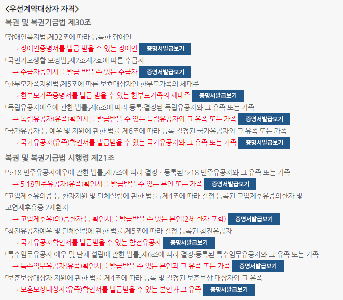 우선 계약 대상자 자격을 가진 사람은 다음과 같습니다.