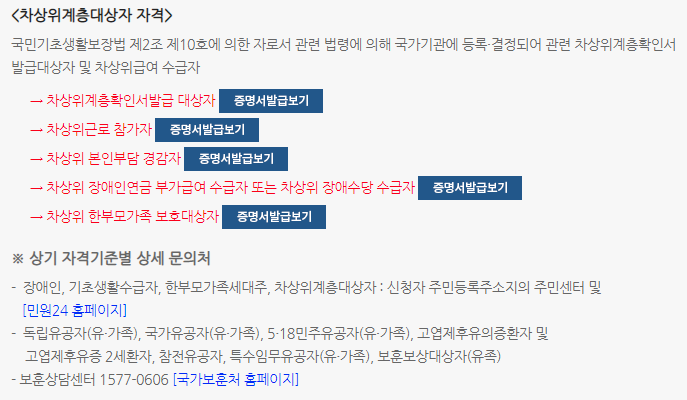1. 차상위 계층 확인서를 발급받을 수 있는 사람