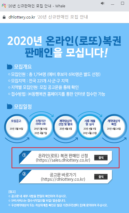 해당 버튼을 클릭하게 되면 복권 판매인 신청 사이트로 즉시 이동합니다.