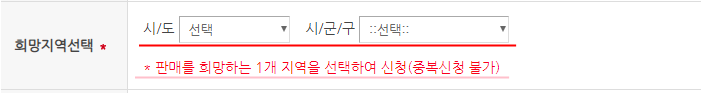판매 희망 지역은 1개만 선택 가능합니다.