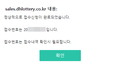 접수 번호는 신청 접수 완료 후 뜨는 안내 창에서 확인할 수 있었고,