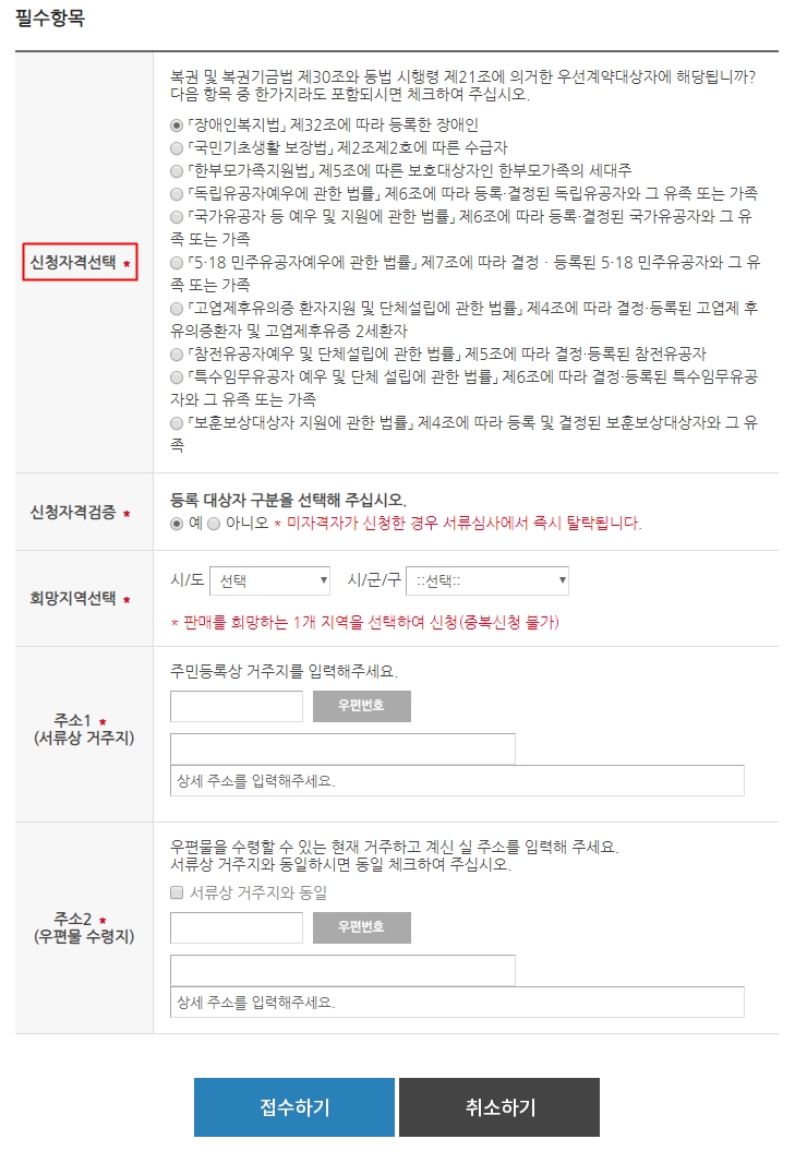 우선 계약 대상자(장애인, 수급자, 한부모가족 세대주 등)이거나