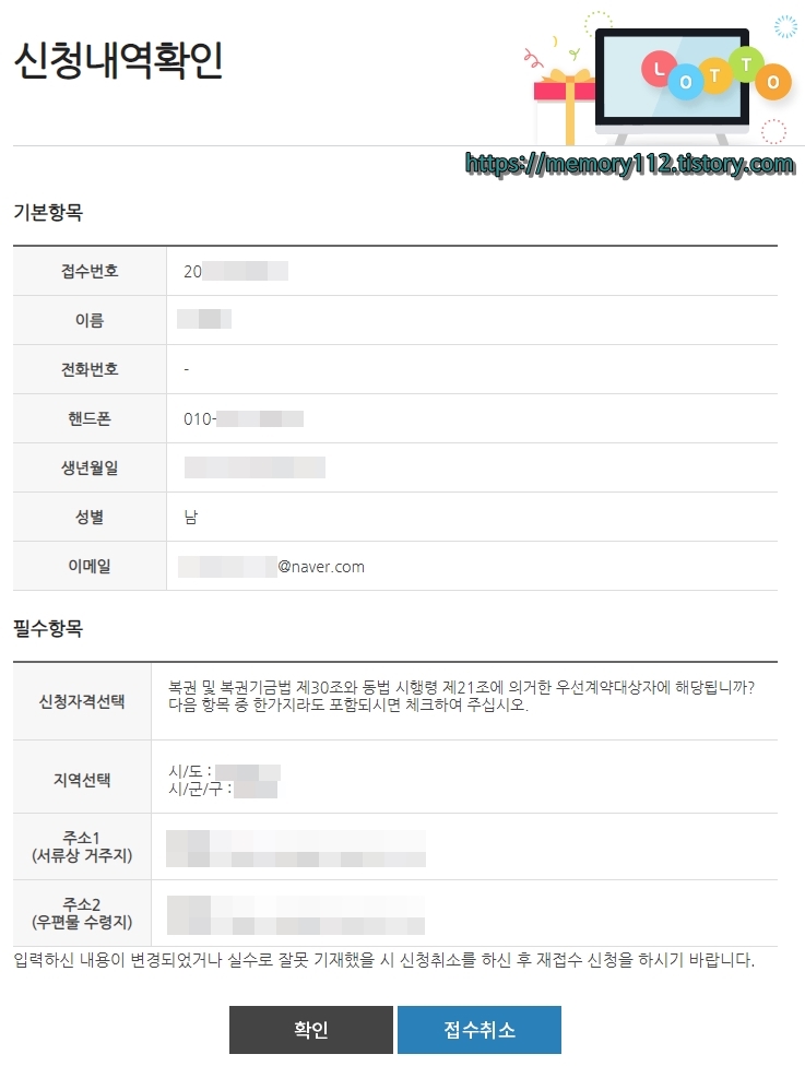 이 두 가지 정보만 있으면 신청 내역 확인 및 로또 판매인 신청 취소가 가능합니다.