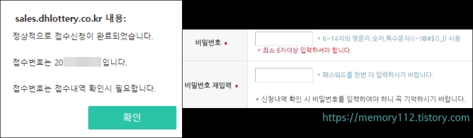 여기서 입력하는 비밀번호는 나중에 신청 내역을 확인할 때 필요합니다.
