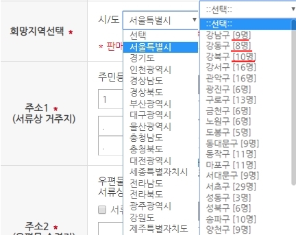 이후 시/군/구를 선택할 때 보면 '강남구(9명)'과 같이 적혀있는데요.