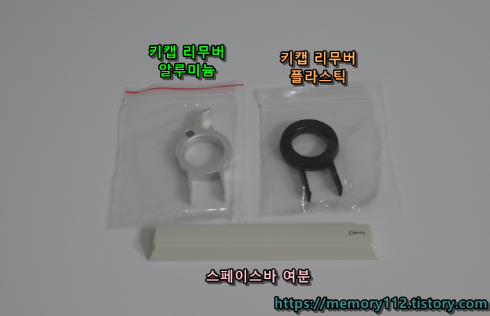 구성품은 키캡 리무버 알루미늄, 키캡 리무버 플라스틱, 스페이스바 여분이다.