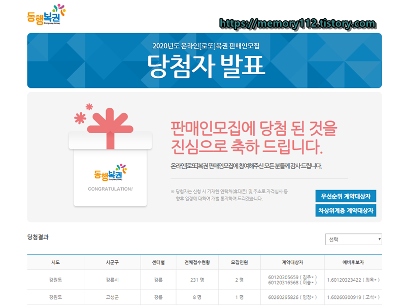 여기서 내가 당첨자인지 확실하게 알고싶다면 접수번호를 알고 있어야 한다.