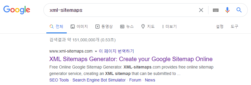 사이트맵을 제출했다고 해서 무조건 검색 결과 순위가 높아지고 그러는 것은 아니다.