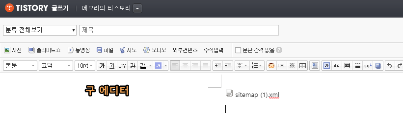 신규 에디터가 아닌 구 에디터로 사이트맵 파일을 업로드해야 한다.